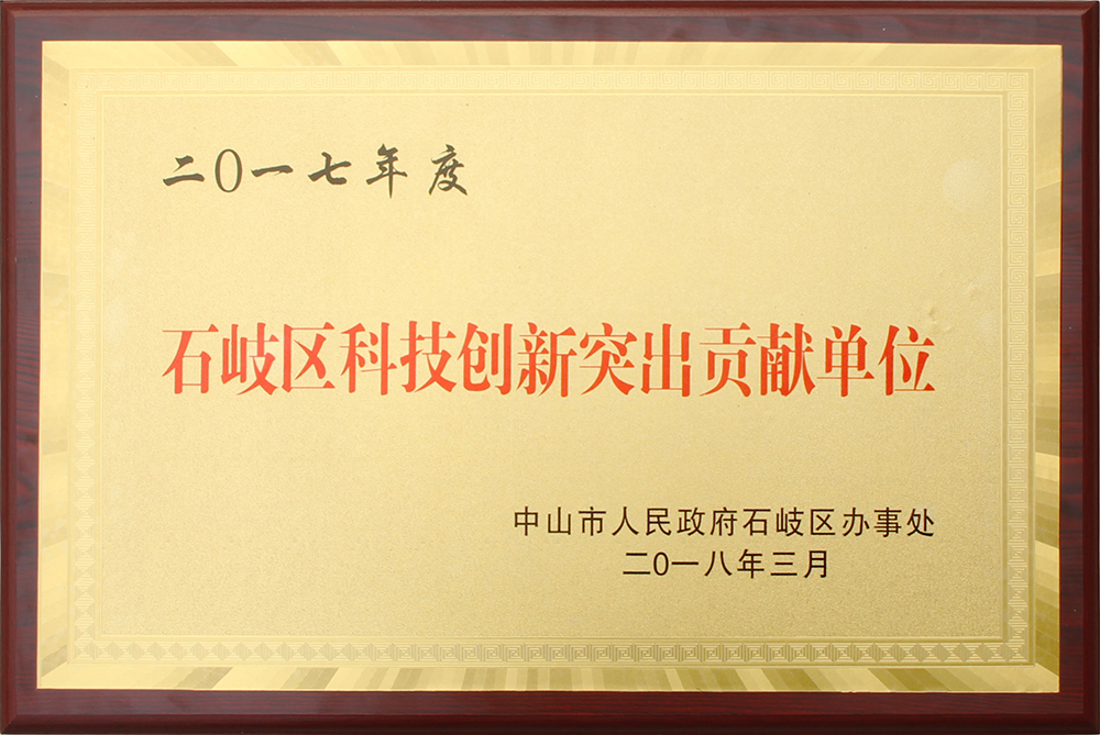 2017年度石岐區(qū)科技創(chuàng)新突出貢獻單位