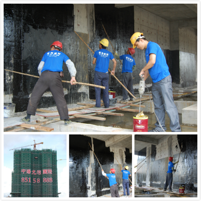 龍灣國際項(xiàng)目防水面積達(dá)5萬㎡,施工部位為地下室剪力墻與頂板,采用了青龍911聚氨酯防水涂料(CQ107)與聚乙烯丙綸,由于連續(xù)降雨,地下室長期處于浸水狀態(tài),給施工帶來了一定難度,但青龍人認(rèn)真對待每一施工細(xì)節(jié),保證工期內(nèi)圓滿完成,目前地下室防水已經(jīng)接近尾聲,獲得了甲方的一致認(rèn)可。