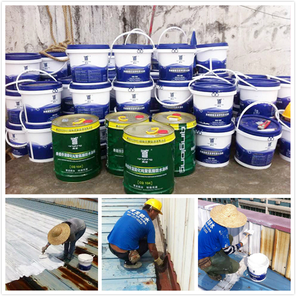 青龍公司中山經(jīng)銷商張總成功承接了這一防水補(bǔ)漏工程。經(jīng)過實地仔細(xì)檢查,并經(jīng)與客戶詳細(xì)協(xié)商,最后敲定采用青龍公司CQ103丙烯酸酯高級彈性防水涂料和CQ104單組份濕固化純聚氨酯防水涂料的組合補(bǔ)漏方案。青龍CQ103丙烯酸酯防水涂料具有良好的耐老化、延伸性、粘結(jié)性、成膜性及耐高溫性,因此非常適合在鐵皮房屋頂作整體涂刷;而屋頂排水溝則采用CQ104單組份濕固化純聚氨酯防水涂料。