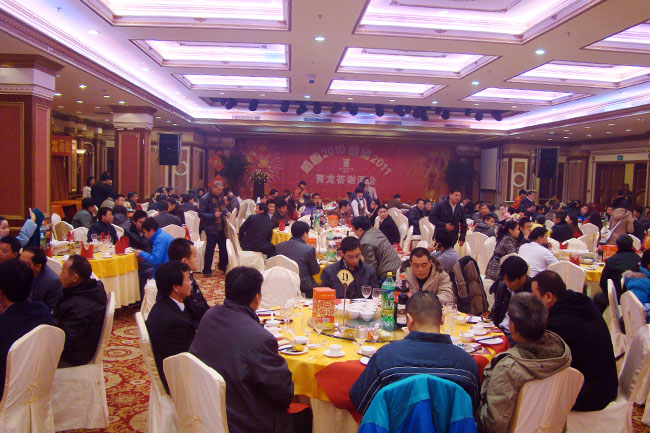 本次青龍答謝酒會(huì)的主題是:"感恩2010,展望2011"。南寧市隆安縣華僑經(jīng)濟(jì)管理區(qū)領(lǐng)導(dǎo)、南寧市建委墻改辦領(lǐng)導(dǎo)、設(shè)計(jì)院領(lǐng)導(dǎo)、檢測(cè)中心領(lǐng)導(dǎo)、各房地產(chǎn)建筑公司領(lǐng)導(dǎo)及廣西青龍代理商和員工200余人出席了本次酒會(huì)。