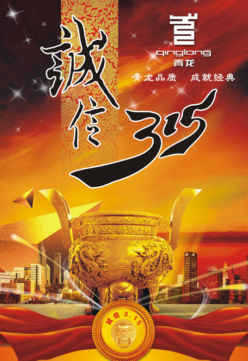 為此,在“3.15國際消費(fèi)者權(quán)益日”來臨之際,青龍公司率先在行業(yè)中宣言:牢固樹立誠信經(jīng)營理念;嚴(yán)格執(zhí)行質(zhì)量管理體系;不斷完善售后服務(wù)制度;加強(qiáng)商業(yè)職業(yè)道德,維護(hù)市場價(jià)格秩序;積極承擔(dān)社會(huì)責(zé)任,做誠信經(jīng)營的楷模。讓廣大消費(fèi)者在一個(gè)價(jià)格公平、誠信的環(huán)境中消費(fèi),自身的權(quán)益不受傷害。