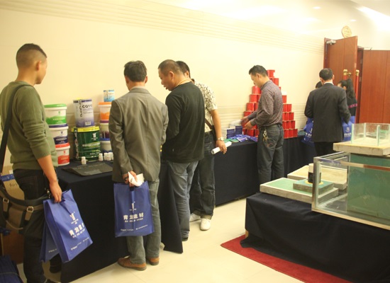 廣西青龍化學(xué)建材有限公司營(yíng)銷總監(jiān)王定中就行業(yè)發(fā)展、企業(yè)現(xiàn)狀等與現(xiàn)場(chǎng)來賓進(jìn)行了廣泛交流,提出“一個(gè)品牌,四門生意”的商業(yè)理念。青龍技術(shù)總工徐新生則從建筑保溫、建筑防水、建筑加固和GRC四個(gè)方面向現(xiàn)場(chǎng)觀眾介紹該公司的產(chǎn)品優(yōu)勢(shì)。在建筑防水解決方面,重點(diǎn)推介反應(yīng)型粘合膠與高分子防水卷材,在差異化和品牌化的基礎(chǔ)上,向現(xiàn)場(chǎng)觀眾算了一筆“經(jīng)濟(jì)賬”。他還重點(diǎn)介紹了CRC非瀝青基自粘膠膜高分子防水卷材,通過實(shí)物展示、優(yōu)勢(shì)對(duì)比和產(chǎn)品特性說明,讓與會(huì)者詳細(xì)了解了CRC這枚攻占市場(chǎng)的利器。