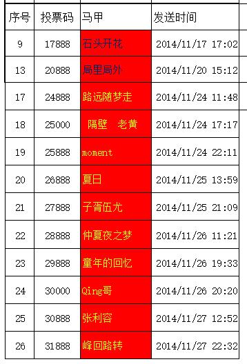 第二批投中并中獎名單公布如下(包括上期未及時提交信息):石頭開花、局里局外、路遠隨夢走、隔壁 老黃、moment、夏日、子胥伍尤、仲夏夜之夢、童年的回憶、Qing哥、張利容、峰回路轉。恭喜他們,也請大家繼續(xù)支持青龍,只為青龍投票!