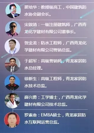 發(fā)布會(huì)上,防水行業(yè)多位為人熟知的專家、大咖和行業(yè)精英,將會(huì)蒞臨現(xiàn)場(chǎng),為大家解讀家居防水行業(yè)現(xiàn)狀及趨勢(shì)、家居防水新零售商業(yè)模式、家居防水互聯(lián)網(wǎng)策略等重大課題,為廣大防水人士答疑解惑。一定會(huì)讓大家收獲滿滿,稇載而歸!