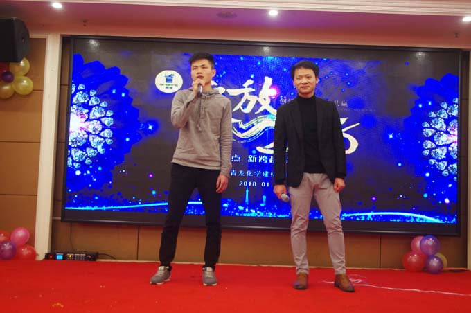 年會(huì)在公司董事長(zhǎng)宋董的致辭中,拉大盛幕。宋董總結(jié)了2017年公司的收獲,公司整體業(yè)務(wù)增長(zhǎng)30%以上,成長(zhǎng)趨勢(shì)好;特別是8月26日以來,新成立的家裝事業(yè)部,新零售店招商勢(shì)頭發(fā)展迅猛至1月份,合作及加盟商將近100家。同時(shí)展望2018,希望大家一起努力,讓公司更快更好的發(fā)展。特別是家裝提出招募目標(biāo)500家新零售加盟商,達(dá)到行業(yè)一線品牌。對(duì)工程防水和GRC業(yè)務(wù),也提出了目標(biāo)整體在2017年的基礎(chǔ)上30%以上增長(zhǎng),要實(shí)現(xiàn)公司業(yè)務(wù)結(jié)構(gòu)跨越式發(fā)展步伐。青龍公司籌劃上市鼓舞著每一位青龍員工士氣,為防水事業(yè)做出不懈努力,帶領(lǐng)大家賺大錢。