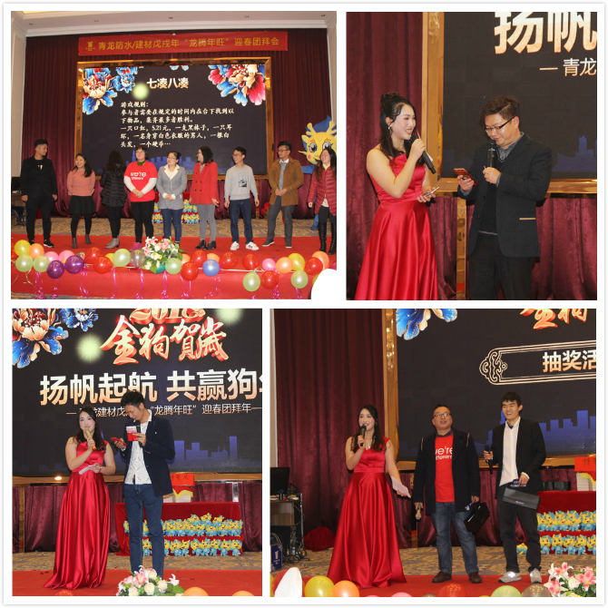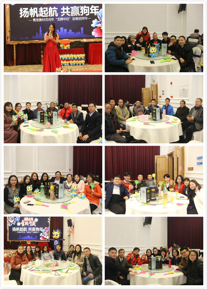 2018年2月7日,青龍建材中山公司2017年年終總結(jié)表彰大會及2018迎新年會在中山維出納國際酒店隆重舉行,青龍董事長宋敦清、營銷總監(jiān)賀金龍、招商總監(jiān)周炳陽、家裝事業(yè)部總經(jīng)理于超軍、質(zhì)量總監(jiān)張科、中山工廠廠長劉文學(xué)、方文軍以及青龍中山公司、港口工廠、三角工廠全體員工參加了盛會。晚會還現(xiàn)場連線了青龍海南環(huán)球100GRC工廠和馬來西亞森林城市防水工地。晚會繼往開來,精彩紛呈,其樂融融,取得了圓滿的成功!