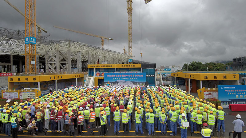 "分秒必爭(zhēng),決勝坪山",2018年8月10日早上9點(diǎn),深圳坪山高新區(qū)綜合服務(wù)中心項(xiàng)目誓師大會(huì)現(xiàn)場(chǎng),宣誓聲異口同聲、響徹云霄,似乎為即將成為坪山新地標(biāo)而摩拳擦掌。由青龍公司GRC團(tuán)隊(duì)等13個(gè)承建單位組成的1000多人方陣,堅(jiān)定表達(dá)了圓滿(mǎn)完成目標(biāo)的信心和決心。