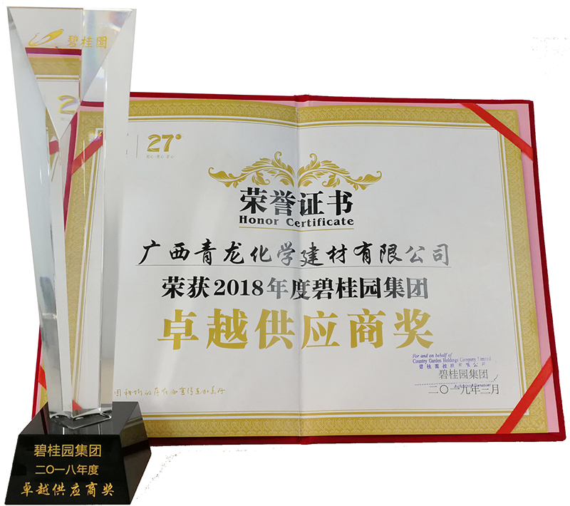 3月,在碧桂園集團(tuán)2018年度供應(yīng)商大會上,青龍公司憑借過硬的產(chǎn)品質(zhì)量和良好的企業(yè)服務(wù)體系,喜獲2018年度"卓越供應(yīng)商獎"稱號。