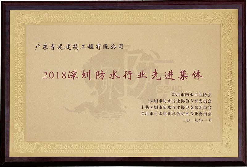 一、獲2018年深圳防水行業(yè)先進(jìn)集體獎