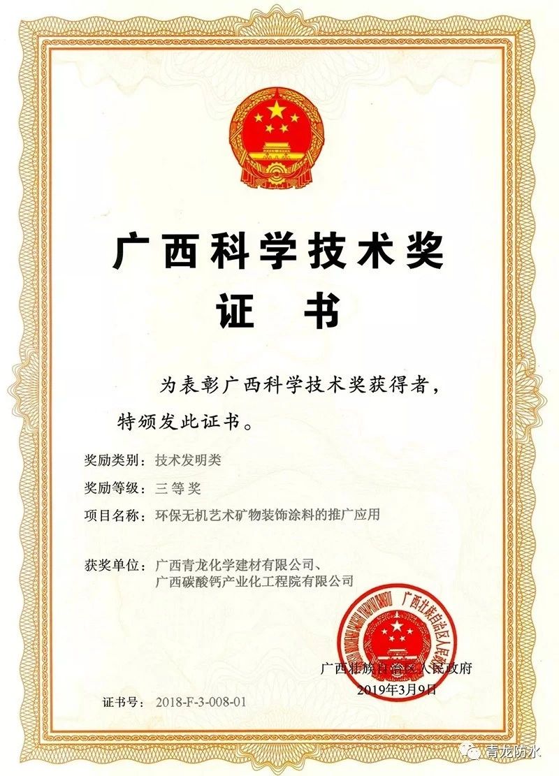 9月,在廣西科學(xué)技術(shù)獎勵大會上,青龍公司榮獲廣西科學(xué)技術(shù)獎三等獎。