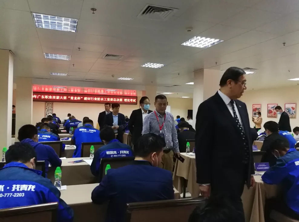 比賽過(guò)程中,廣東省建筑材料行業(yè)協(xié)會(huì)副秘書(shū)長(zhǎng)、廣東省建材行業(yè)工會(huì)聯(lián)合會(huì)副主席王衛(wèi)國(guó),中國(guó)建筑防水協(xié)會(huì)秘書(shū)長(zhǎng)朱冬青,中國(guó)建筑防水協(xié)會(huì)副會(huì)長(zhǎng)、深圳市防水行業(yè)協(xié)會(huì)會(huì)長(zhǎng)瞿培華,廣東省建筑材料行業(yè)協(xié)會(huì)常務(wù)副會(huì)長(zhǎng)陳環(huán),廣東省建筑防水材料協(xié)會(huì)會(huì)長(zhǎng)張泳東,廣東省建筑材料行業(yè)協(xié)會(huì)創(chuàng)會(huì)會(huì)長(zhǎng)、首席專(zhuān)家、高級(jí)工程師吳一岳,廣東青龍新材料有限公司董事長(zhǎng)宋敦清、蘇州非礦院防水材料設(shè)計(jì)研究所所長(zhǎng)沈春林教授等領(lǐng)導(dǎo)蒞臨比賽現(xiàn)場(chǎng)視察指導(dǎo)。朱秘書(shū)長(zhǎng)希望青龍?jiān)诤霌P(yáng)工匠精神方面要為行業(yè)作表率,成為防水企業(yè)在防水補(bǔ)漏領(lǐng)域人才培育的標(biāo)桿。王副主席表示此次無(wú)論是理論考試還是模型實(shí)操,都非常的有水準(zhǔn),標(biāo)準(zhǔn)化程度較高,為以后的類(lèi)似比賽進(jìn)行豎立了榜樣。