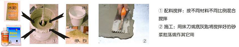 3、配制混凝土或砂漿時,將砂、石、水泥及水在攪拌機中先直接攪拌,再加 對應(yīng)比例的防水劑繼續(xù)攪拌均勻即可;