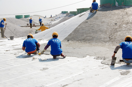 由于項(xiàng)目的重要性,建設(shè)方對時(shí)間和質(zhì)量提出了高標(biāo)準(zhǔn)、嚴(yán)要求,不但要求材料優(yōu)良,技術(shù)過硬,而且必須具有快速施工的能力。10月份,偏逢海南遭遇歷史罕見暴雨,無法正常施工,給青龍公司帶來了最為嚴(yán)峻的考驗(yàn)。為了確保工程如期完成,青龍公司擴(kuò)大施工隊(duì)伍,120余名建設(shè)者加班加點(diǎn),堅(jiān)守崗位,全力以赴,打造好的細(xì)節(jié)。從成品出庫、物流、施工、檢驗(yàn)、后勤保障等,每一個(gè)細(xì)節(jié)爭分奪秒。在青龍人的精心操作和不懈努力下,工程如期完成,10萬平方米的保溫層已順利通過驗(yàn)收,工程質(zhì)量監(jiān)督負(fù)責(zé)人和市級領(lǐng)導(dǎo)多次考察,對青龍能在如此巨大壓力下的超常施工能力表示贊嘆。目前正在進(jìn)行防水抗裂層及屋頂GRC工程安裝,預(yù)期春節(jié)前完工。