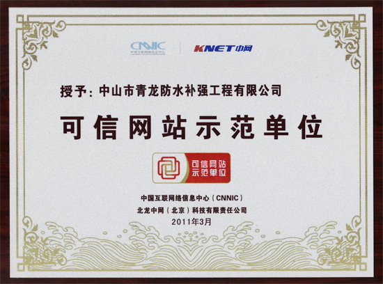 2010年10月29日,中國(guó)省級(jí)"可信網(wǎng)站示范工程"試點(diǎn)已在廣東啟動(dòng),首批"可信網(wǎng)站示范單位"也同期評(píng)出。國(guó)內(nèi)建筑防水、保溫、加固、GRC裝飾材料集大成者,國(guó)內(nèi)較大的EVB保溫砂漿生產(chǎn)商,高新技術(shù)企業(yè)——青龍化建(