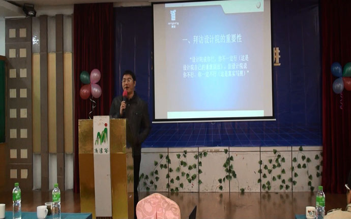 會(huì)議還邀請(qǐng)來?xiàng)钸M(jìn)舟先生作了“如何拜訪設(shè)計(jì)院”的專題講座,分享他跑設(shè)計(jì)院的心得以及注意事項(xiàng)。楊總從他自己的經(jīng)歷出發(fā),講述拜訪設(shè)計(jì)院的重要性,并詳細(xì)地解說了設(shè)計(jì)院設(shè)計(jì)業(yè)務(wù)的流程,找出建材行業(yè)與他們業(yè)務(wù)的契合點(diǎn)。之后,楊總還為代理商們出謀劃策,講述如何建設(shè)設(shè)計(jì)院推廣團(tuán)隊(duì),如何進(jìn)行業(yè)務(wù)員的培訓(xùn),如何制定和實(shí)施工作計(jì)劃以及考核等問題。