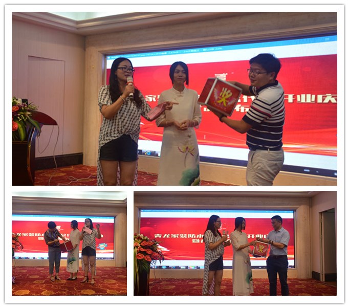 在答謝午宴上,賓客滿席,董老板、青龍營(yíng)銷總監(jiān)賀總、青龍家裝營(yíng)銷于總、青龍質(zhì)量總監(jiān)張總和專賣店技術(shù)工程師周工分別上臺(tái)進(jìn)行了分享。午宴中還穿插了精彩的文藝節(jié)目和豐富的活動(dòng),將現(xiàn)場(chǎng)氛圍推向高潮。廣大來(lái)賓在一片歡聲笑語(yǔ)中,不僅學(xué)習(xí)了更多的創(chuàng)業(yè)經(jīng)驗(yàn)和防水知識(shí),也拓展了人際網(wǎng)絡(luò),愉快地度過(guò)了這個(gè)美好的正午。