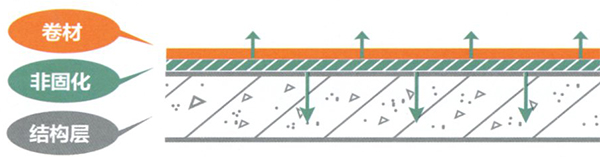 非固化與卷材的復(fù)合做法,主要是將基層進(jìn)行處理,除去水泥浮皮,露出里面的基層;其次,在基層表面進(jìn)行非固化防水涂料的噴涂或者涂膜施工,厚度按照設(shè)計(jì)要求,一般在1.5mm-2mm之間;之后進(jìn)行卷材的鋪粘,并用非固化進(jìn)行搭接處的粘結(jié)?;旧希械年P(guān)鍵點(diǎn)在于非固化防水涂料的施工,分涂抹和噴涂施工兩種方法,可利用機(jī)器進(jìn)行施工。