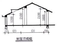 單(多)層建筑物的坡屋頂內(nèi)空間,當設計加以利用時,其凈高超過2.1m的部位應計算全面積;凈高在1.2m至2.1m的部位應計算1/2面積;凈高不足1.2m的部位不應計算面積。設計不利用時不應計算面積。這里我將這種算法簡稱為“凈高界限計算法”。凈高是指樓面或地面至上部樓板(屋面板)底或吊頂?shù)酌嬷g的垂直距離。如圖2:第(1)部分凈高<1.2m,不計算面積;第(2)、(4)部分1.2m≤凈高≤2.1m,計算1/2面積;第(3)部分凈高>2.1m,應全部計算面積。