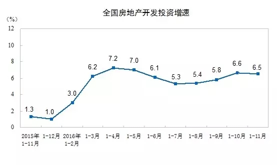 (1)2016年1-11月份,全國(guó)房地產(chǎn)開發(fā)投資93387億元,同比名義增長(zhǎng)6.5%,住宅投資62588億元,增長(zhǎng)6.0%,住宅投資占房地產(chǎn)開發(fā)投資的比重為67.0%。