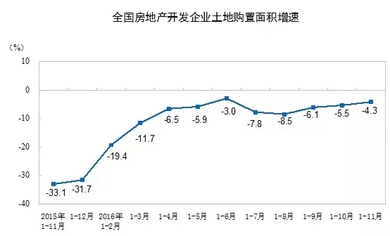 1-11月份,房地產(chǎn)開發(fā)企業(yè)土地購(gòu)置面積19046萬平方米,同比下降4.3%,土地成交價(jià)款7777億元,增長(zhǎng)21.4%。