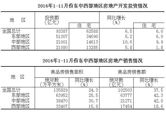 (2)1-11月份,東部地區(qū)房地產(chǎn)開發(fā)投資51307億元,同比增長(zhǎng)5.2%,中部地區(qū)投資21001億元,增長(zhǎng)10.6%;西部地區(qū)投資21080億元,增長(zhǎng)5.8%。
